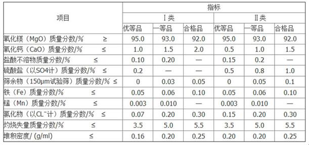 輕質(zhì)氧化鎂指標